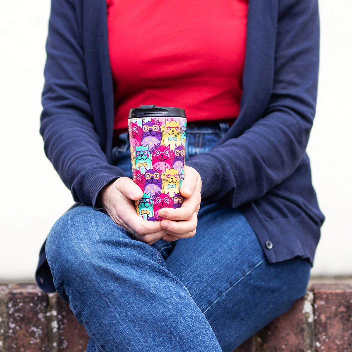 Eco Chic Cats With Glasses Stainless Steel Travel Coffee Cup