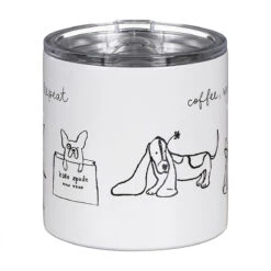 The body of the tumbler is decorated with a classic illustration of Snoopy lying on his back on the roof of his red kennel. The design is set against a pale blue background representing the sky and is complete with the phrase ‘I’m allergic to Mondays’ written either side in a bold uppercase font. The transparent lid contrasts the colour scheme and simply pushes into place. With a capacity of 350ml, it is ideal for your daily caffeine fix on the way to work, or a cheeky gin when you’re having a picnic. Thanks to its thermal insulation this travel cup is perfect for keeping hot drinks hot and cold drinks cold!